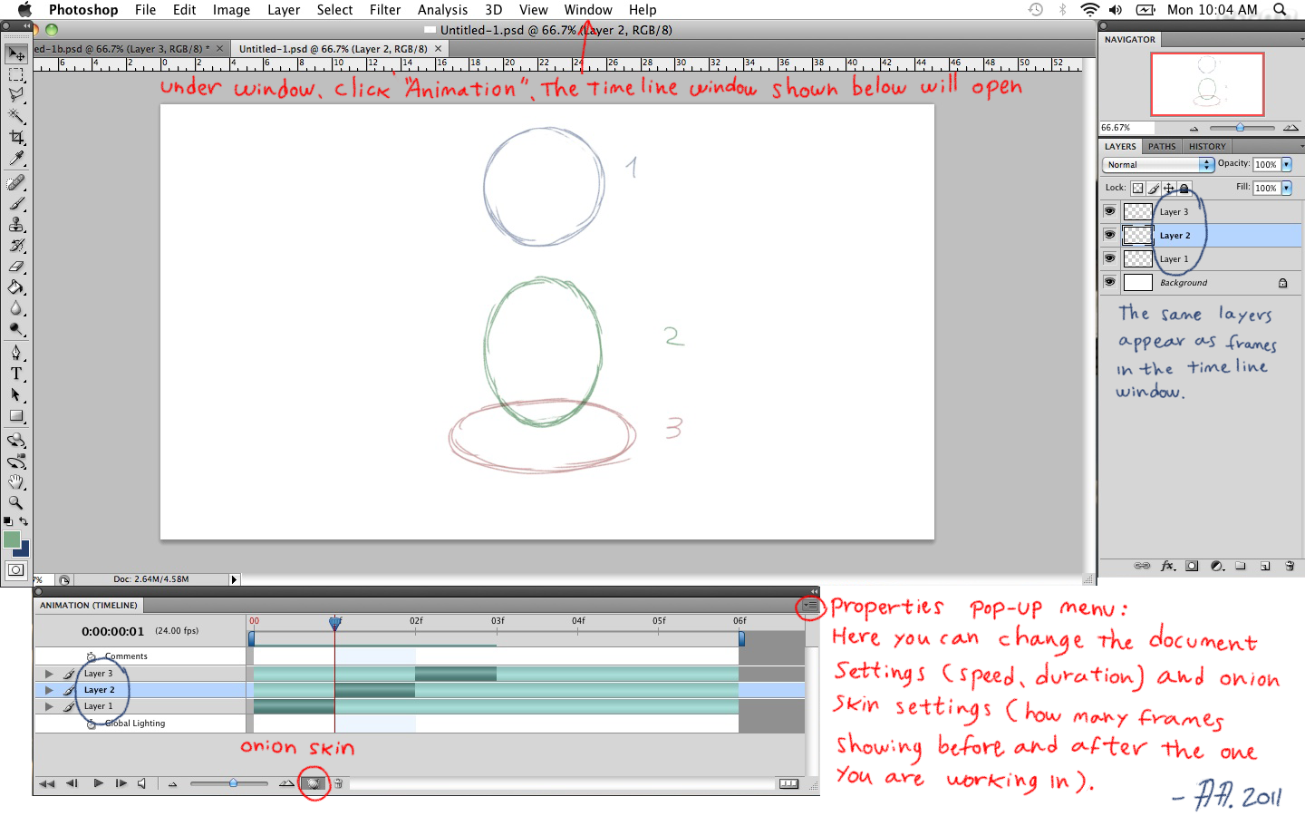 I made a screenshot explaining the basics of the Photoshop animation interface, It's thanks to Andrew that I know how to use it! I learn a lot from his tips and pointers!